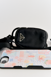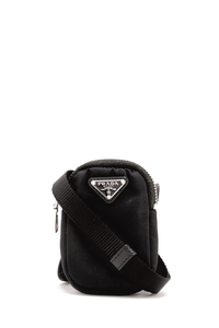 • Made in black nylon, features Prada signature triangle logo plaque to the front, one front pockets and silver-tone hardware.