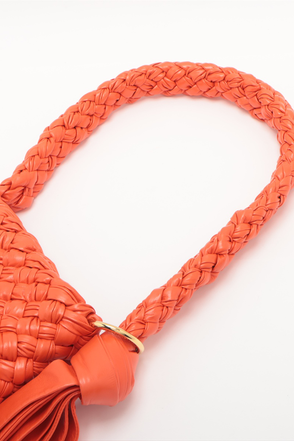 - Intreccio-woven lambskin shoulder bag in red.