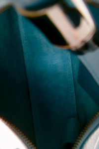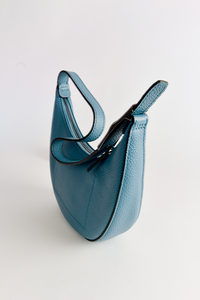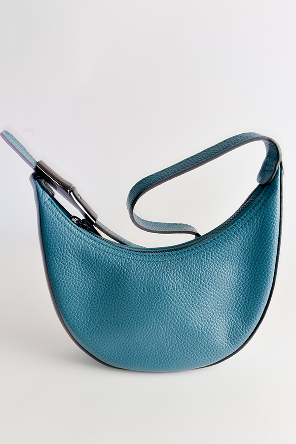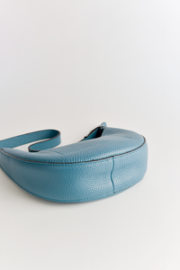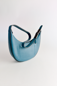 • Made in blue calfskin, features silver tone hardware and zipper closure.