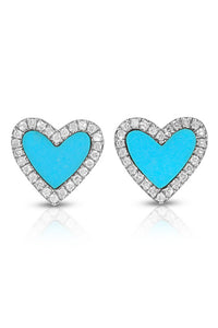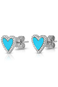 • 14k white gold heart earrings featuring blue enamel and diamonds
