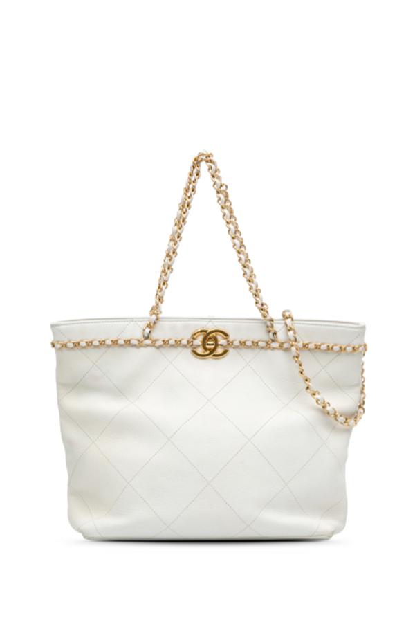 Quilted Calfskin CC Lock Chain Shopping Tote