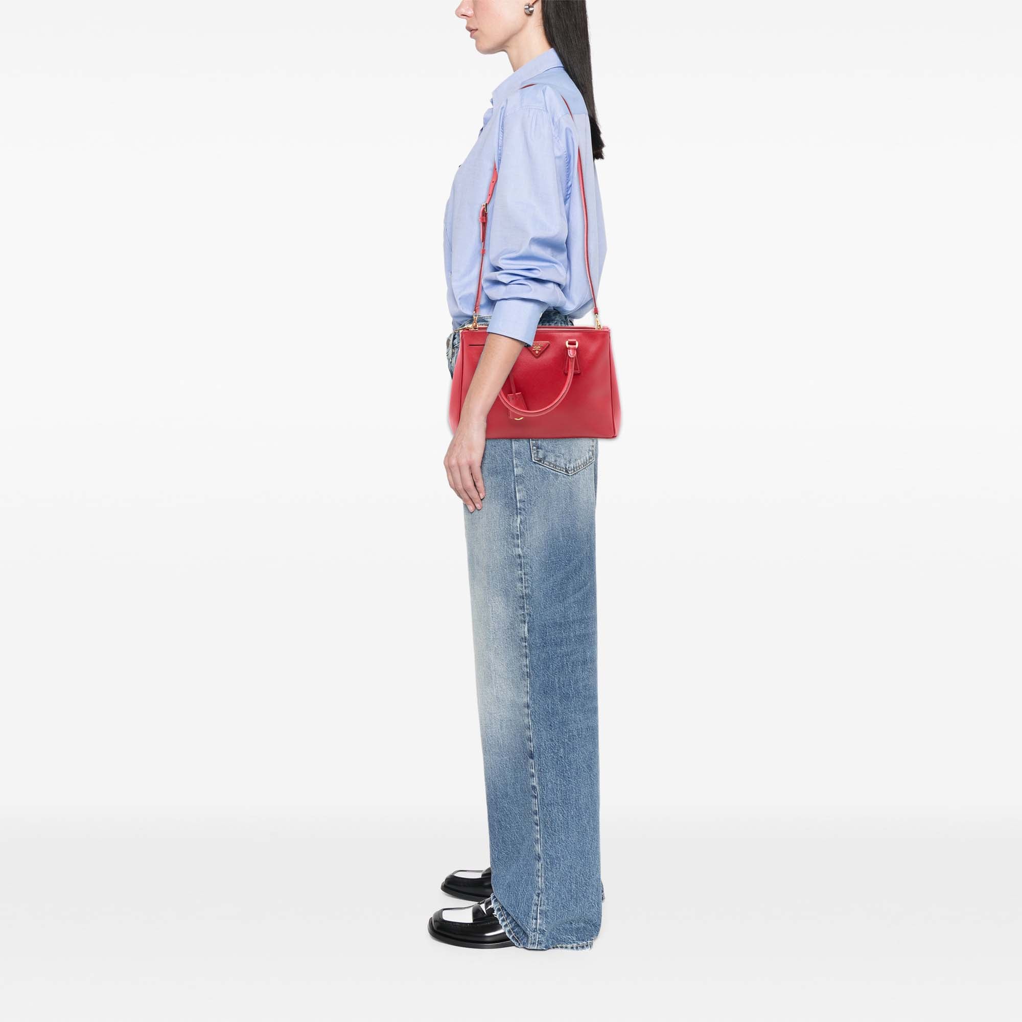 Small Saffiano Lux Galleria Double Zip Satchel