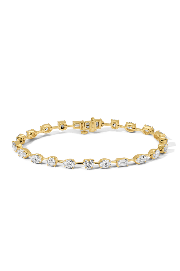 - 14k yellow gold tennis bracelet set with multi lab-grown diamonds.