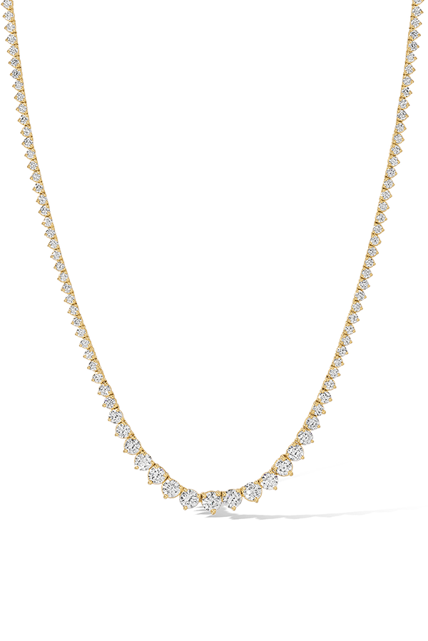 - 14k yellow gold tennis necklace set with round lab-grown diamonds.