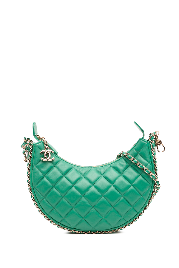 Small Quilted Lambskin Chain Around Hook Hobo Bag
