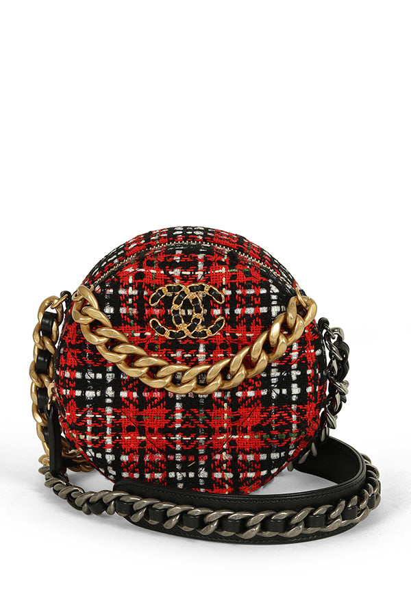 19 Round Clutch with Chain Quilted Tweed