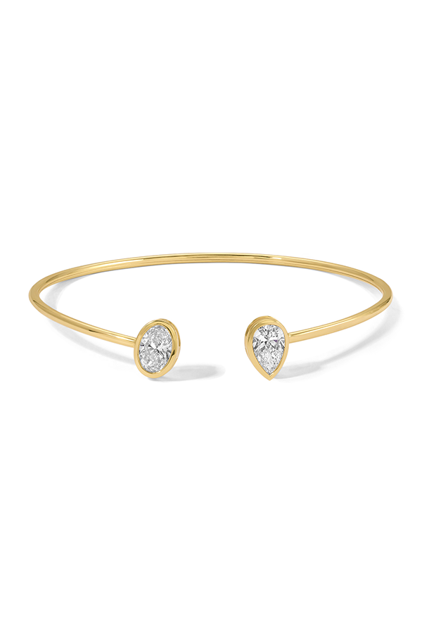 Bezel Set Pear and Oval Diamond Open Bangle (2.10 CTW)