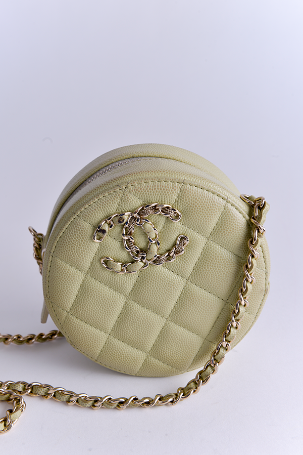 Round Quilted Caviar French New Wave Clutch